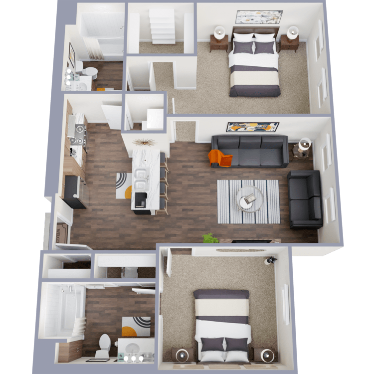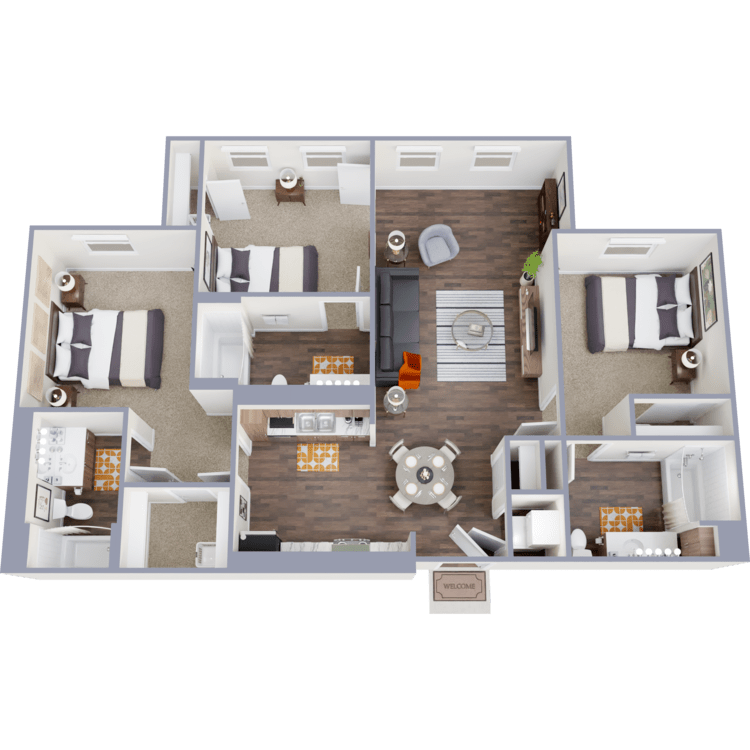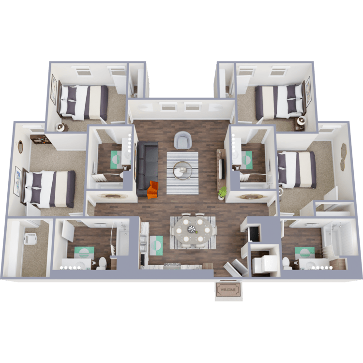 Step inside our thoughtfully designed studio, one, two, three, and four-bedroom apartments for rent, each tailored to meet the needs of individual students. Our apartments feature personal leases, ensuring you have the independence you desire. Every bedroom has a bathroom, making it easy for you and your roommates to enjoy your space. The interiors are fully furnished, with modern decor, stainless steel appliances, and in-home washers and dryers for ultimate convenience. Whether you're studying for exams or relaxing with friends, our apartments provide a comfortable and convenient environment to call home.